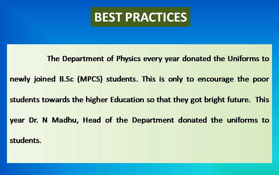 DEPARTMENT OF PHYSICS Best Practices